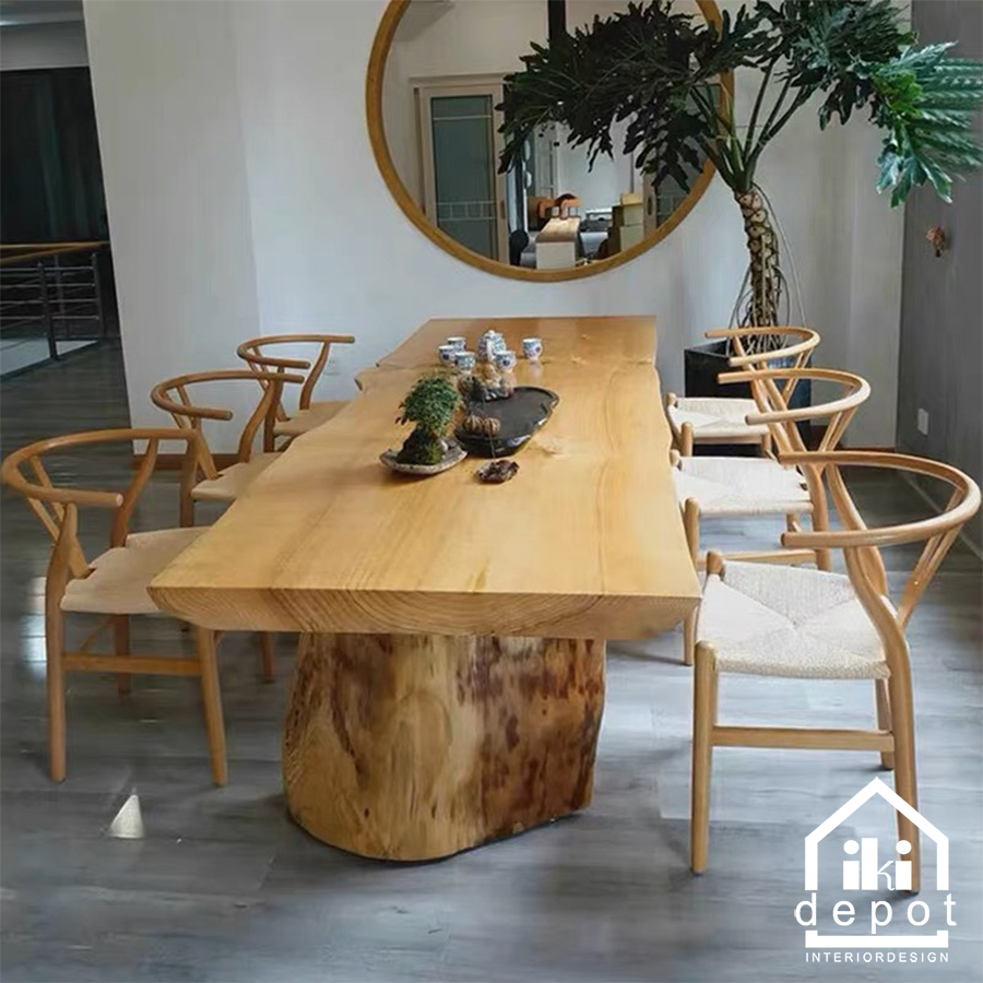 Phong cách Wabi-Sabi là một xu hướng nội thất ngày càng phổ biến trong thế giới đương đại, xuất phát từ Nhật Bản. Wabi-Sabi không chỉ là một cách trang trí, mà còn là một triết lý sống, tôn vinh vẻ đẹp của sự không hoàn hảo, những thứ giản dị và tự nhiên. Bàn nguyên tấm phong cách Wabi-Sabi trở thành biểu tượng cho sự thanh lịch tối giản và tôn vinh vẻ đẹp tự nhiên của gỗ.