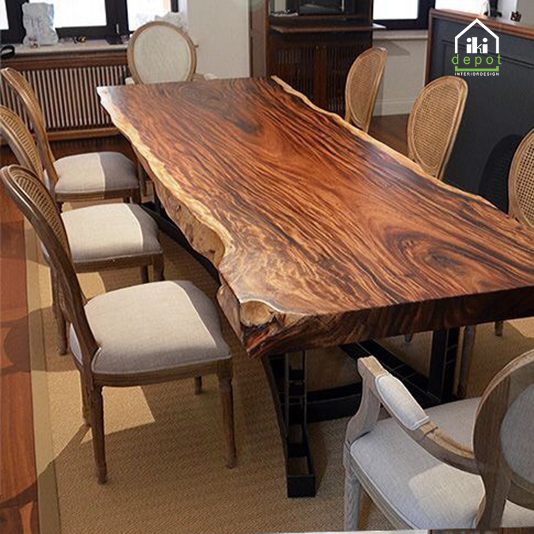 Bàn nguyên tấm phong cách Wabi-Sabi mang lại sự ấm áp và thuận tự nhiên cho không gian sống. Nhìn vào bề mặt của nó, ta có thể tưởng tượng được cây cối đã tồn tại trong nhiều thế hệ và đã chứng kiến cuộc sống phong ba bão táp của thời gian.
