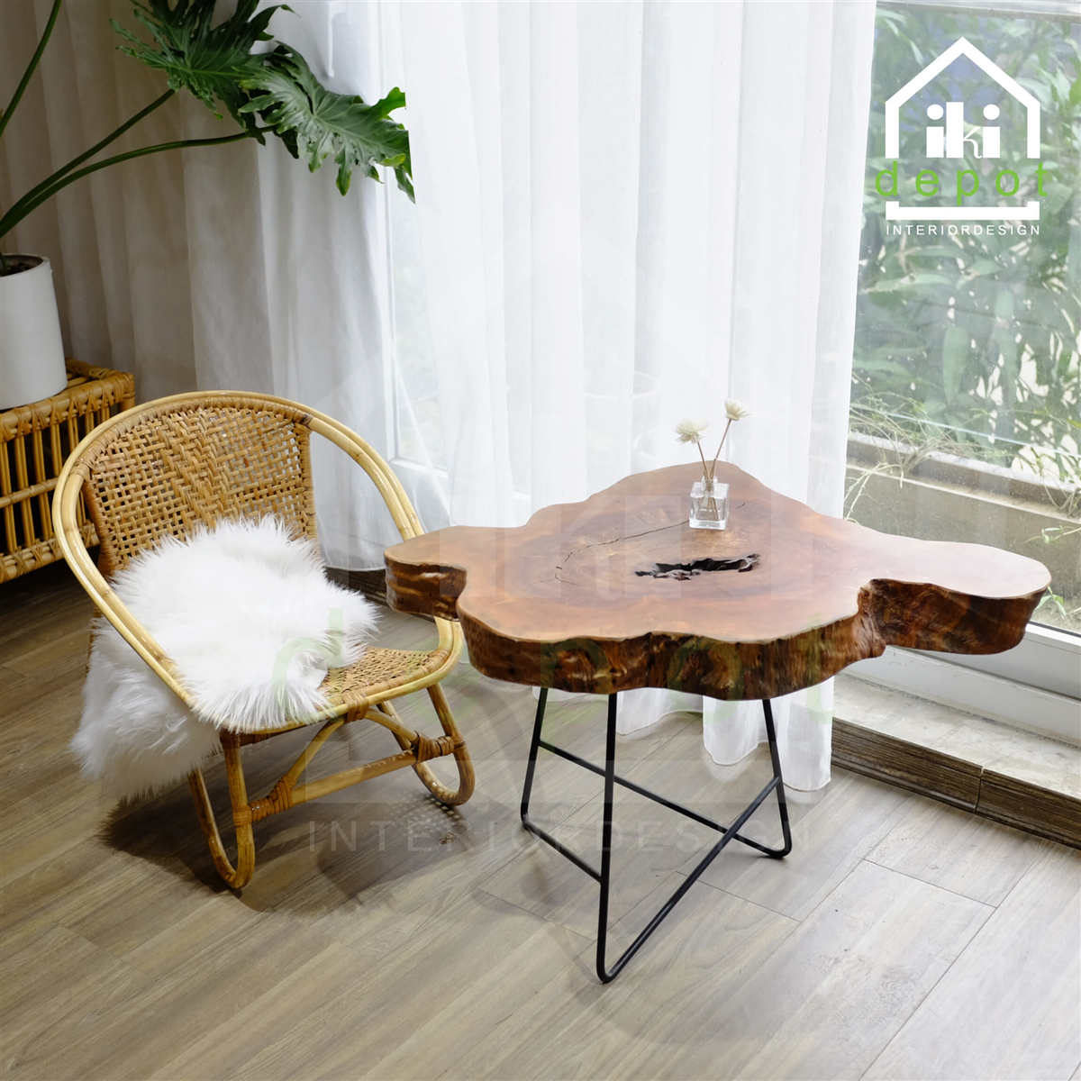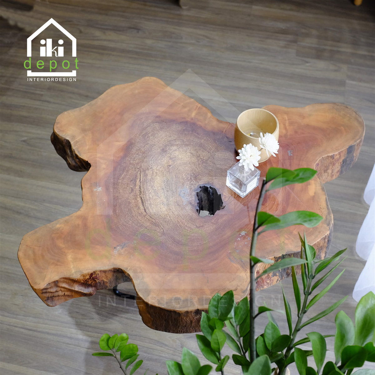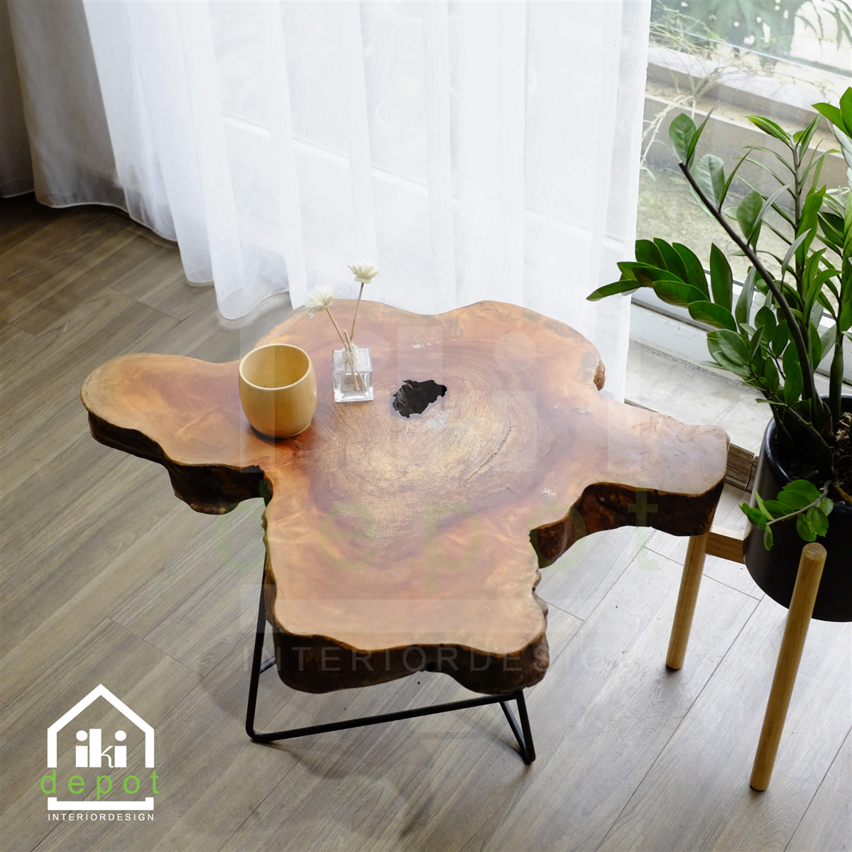 Mặt bàn trà phong cách Wabi-sabi Nhật Bản - giữ lại nguyên trạng vẻ đẹp thô mộc không gò giũa, vẻ đẹp từ những thứ khiếm khuyết, một thứ tưởng chừng vô dụng, xấu xí lại có vẻ đẹp tiềm ẩn đến bất ngờ.