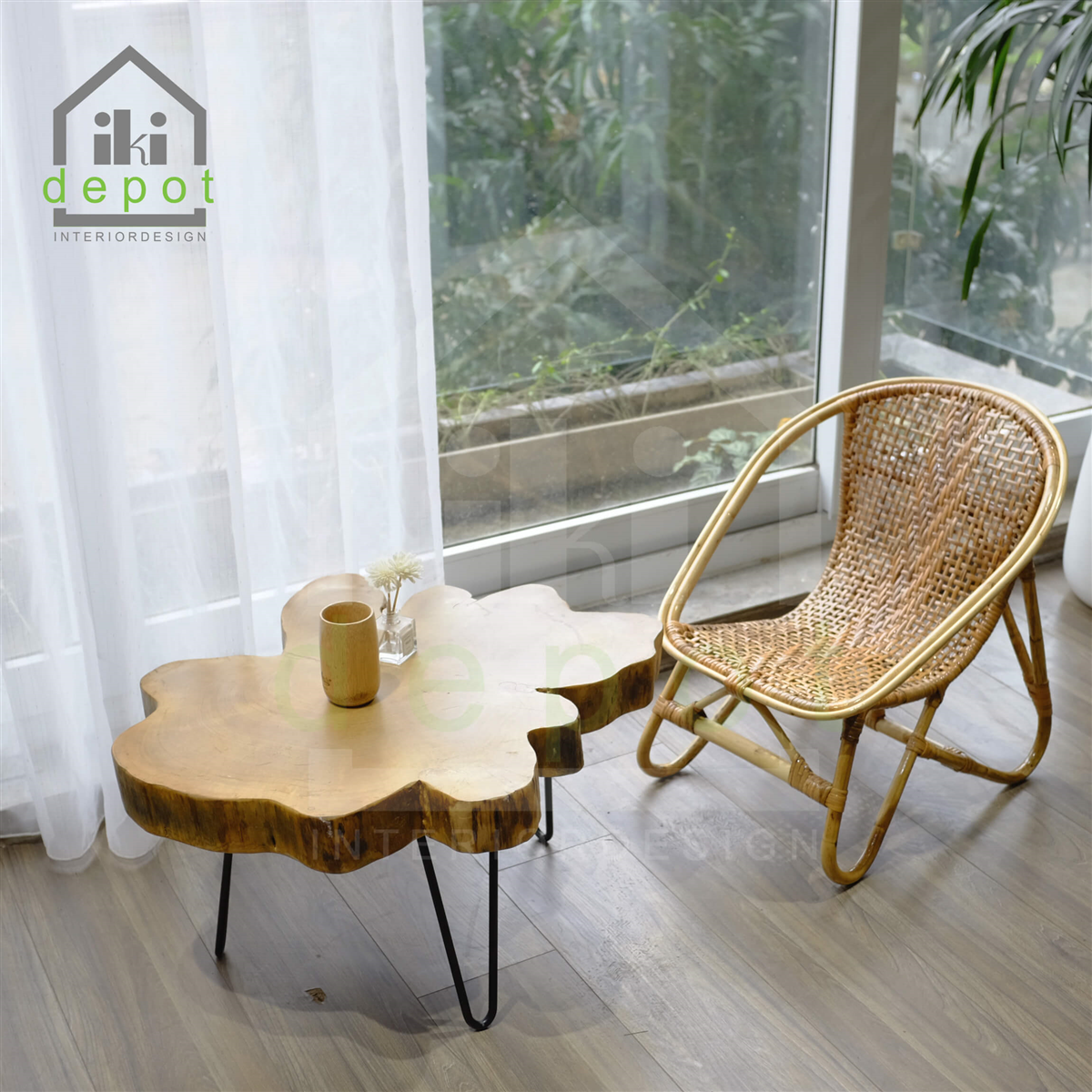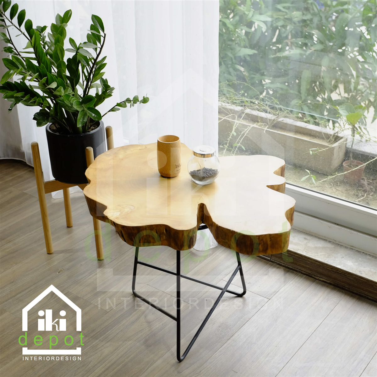 Mặt bàn trà phong cách Wabi-sabi Nhật Bản - giữ lại nguyên trạng vẻ đẹp thô mộc không gò giũa, vẻ đẹp từ những thứ khiếm khuyết, một thứ tưởng chừng vô dụng, xấu xí lại có vẻ đẹp tiềm ẩn đến bất ngờ.