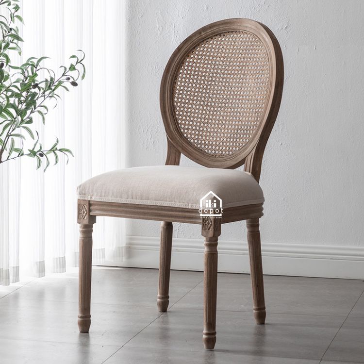 Mẫu ghế Louis là minh chứng cho vẻ đẹp vượt thời gian khi pha trộn nhuần nhuyễn giữa nét cổ điển châu Âu và chất Á Đông trong phong cách Indochine. Phần lưng bo tròn đan mây thủ công – chi tiết đặc trưng của kiến trúc Pháp thuộc – không chỉ mang giá trị thẩm mỹ mà còn tạo độ thoáng nhẹ, phù hợp với khí hậu nhiệt đới và lối sống hiện đại.