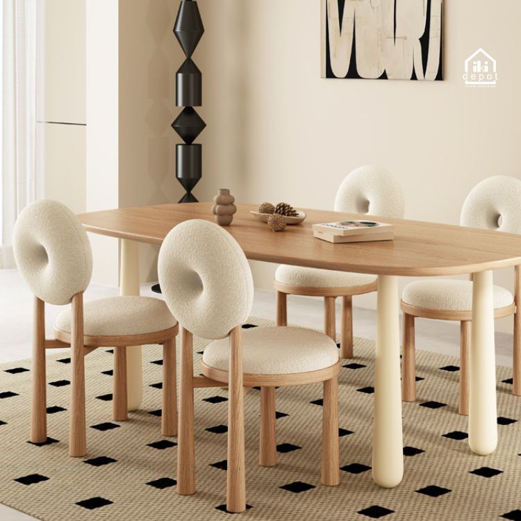 Dù bạn yêu thích bàn ăn tròn nhỏ cho không gian cozy hay bàn chữ nhật lớn cho những bữa tiệc gia đình, ghế Mochi đều có thể kết hợp hài hòa. Kiểu dáng không tay vịn giúp dễ dàng bố trí linh hoạt, không gây vướng víu, đồng thời tôn lên sự thanh thoát cho không gian xung quanh.