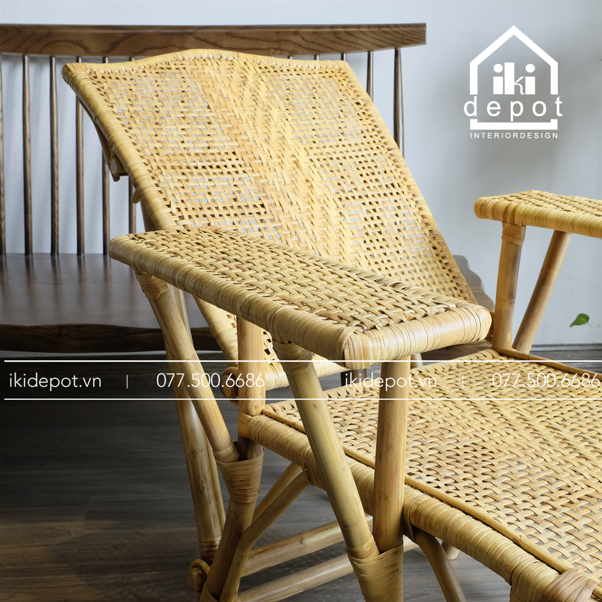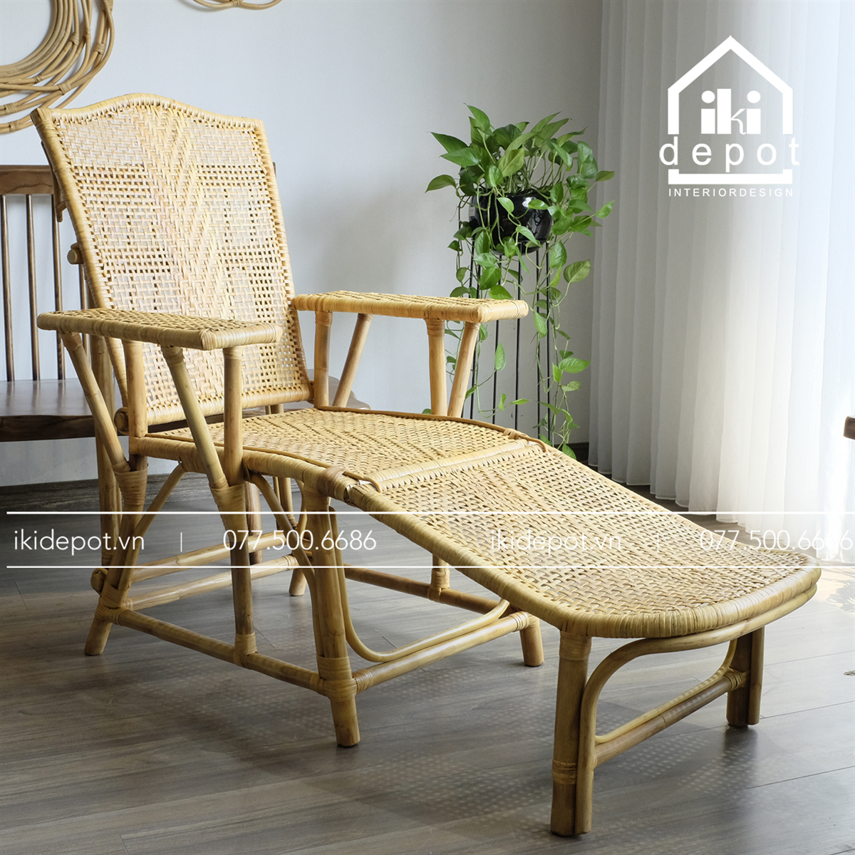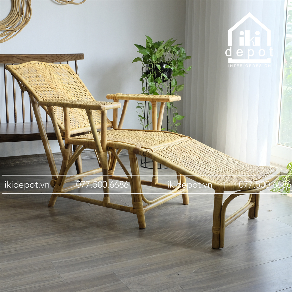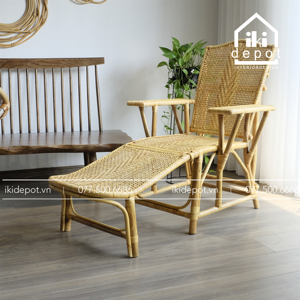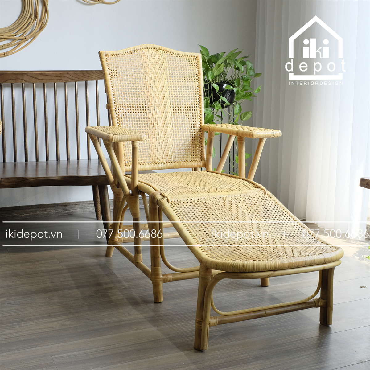 Chiếc ghế nằm thư giãn bằng Mây tự nhiên được IKI DEPOT tái hiện lại hình mẫu chiếc ghế phòng chờ thoải mái của những năm 1900. Vượt quả cả thế kỷ nhưng hình dáng và độ thoải của chiếc ghế vẫn được giữ nguyên.