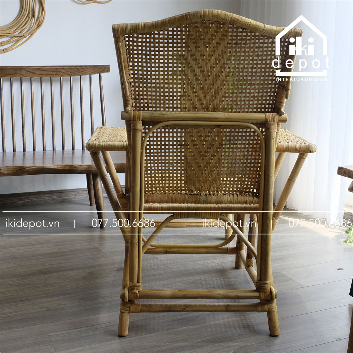 Phần mặt ngồi và lưng của ghế được đan tay toàn bộ trực tiếp vào khung ghế nên rất chắc chắn.