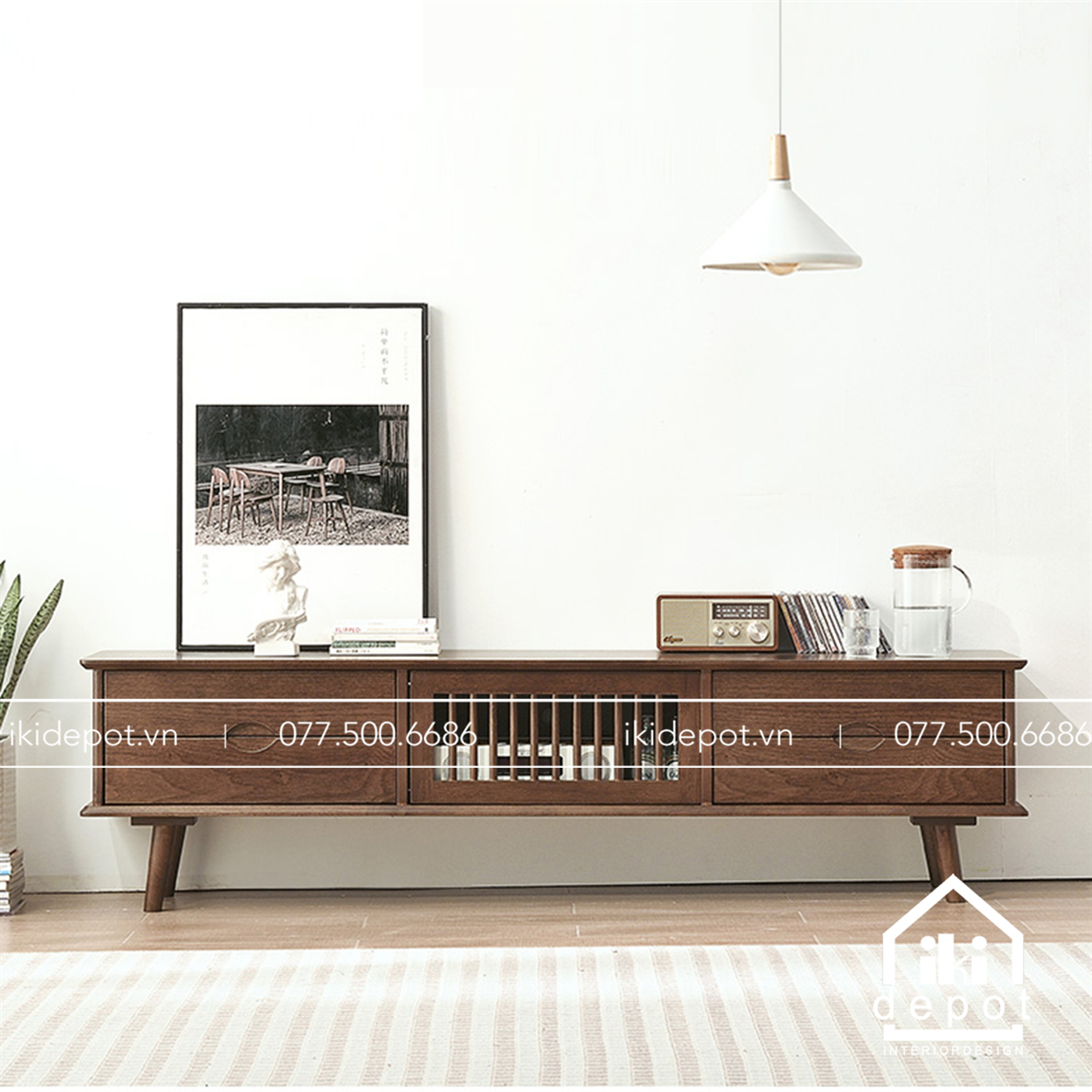 Kệ tivi dedar IKI001 - sản phẩm mang kiểu dáng hiện đại phù hợp với nhiều phong cách nội thất khác nhau như Rustic, Scandinavia, Wabi-sabi Nhật bản, ... Sản phẩm được kết hợp hài hòa giữa khoảng kín và hở làm cho không gian phòng khách thêm sang trọng và nổi bật.