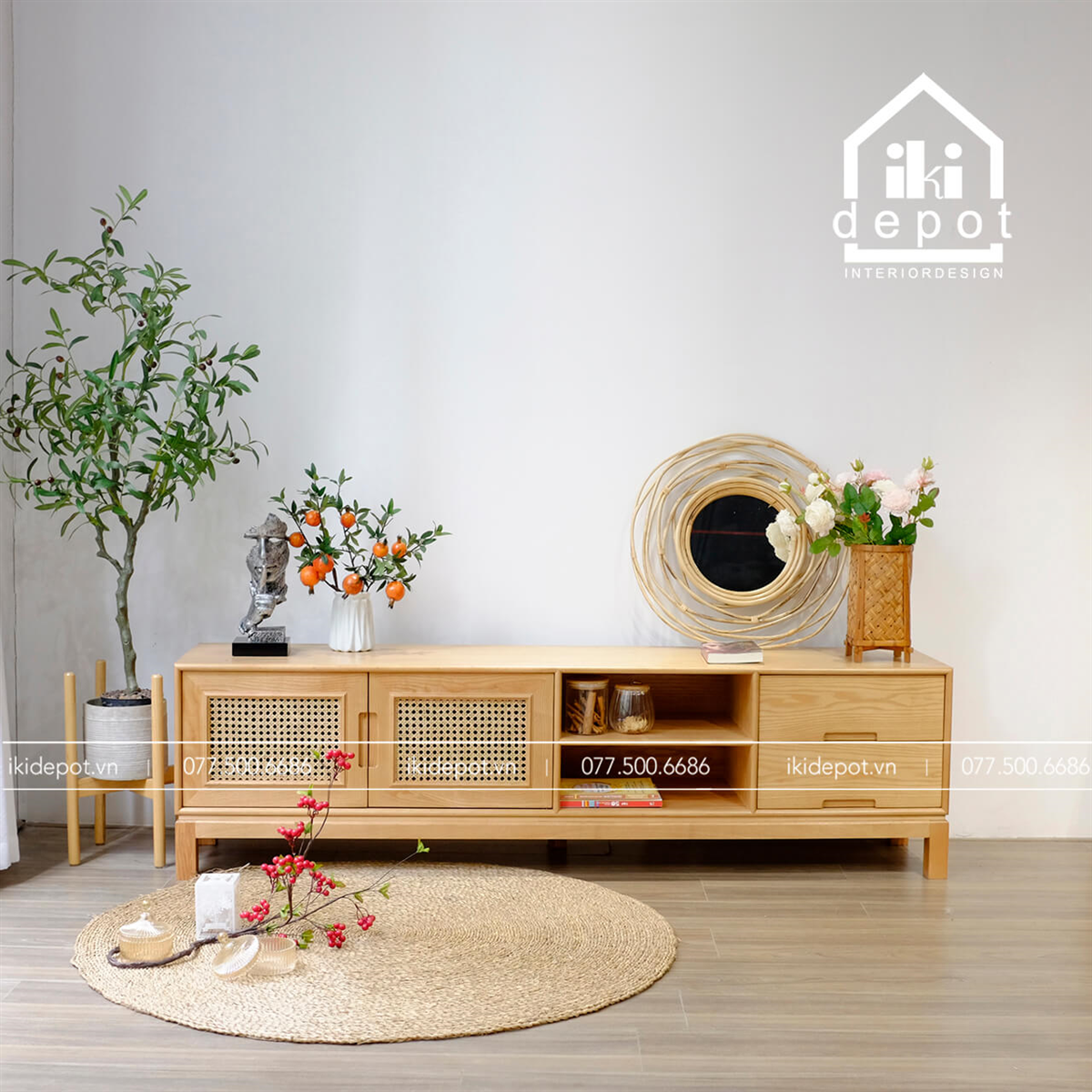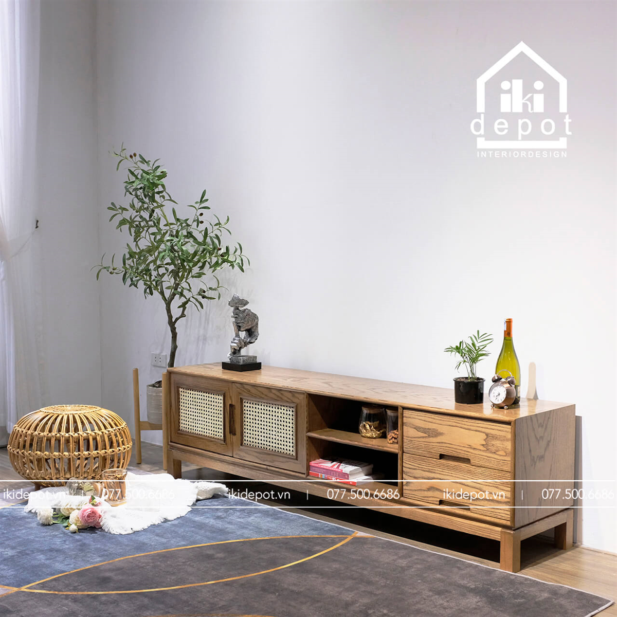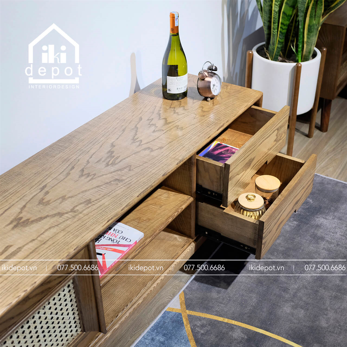 Kệ tivi IKI0007 là một trong những sản phẩm được nhiều khách hàng tin dùng của IKI DEPOT. Sản phẩm sở hữu 2 ngăn mở, 2 ngăn hở và 2 ngắn kéo giúp bạn có thể chứa được nhiều đồ vật cần thiết trong không gian phòng khách của gia đình.